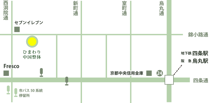 京都市営地下鉄「四条」駅・阪急「烏丸」駅24番出口より徒歩5分